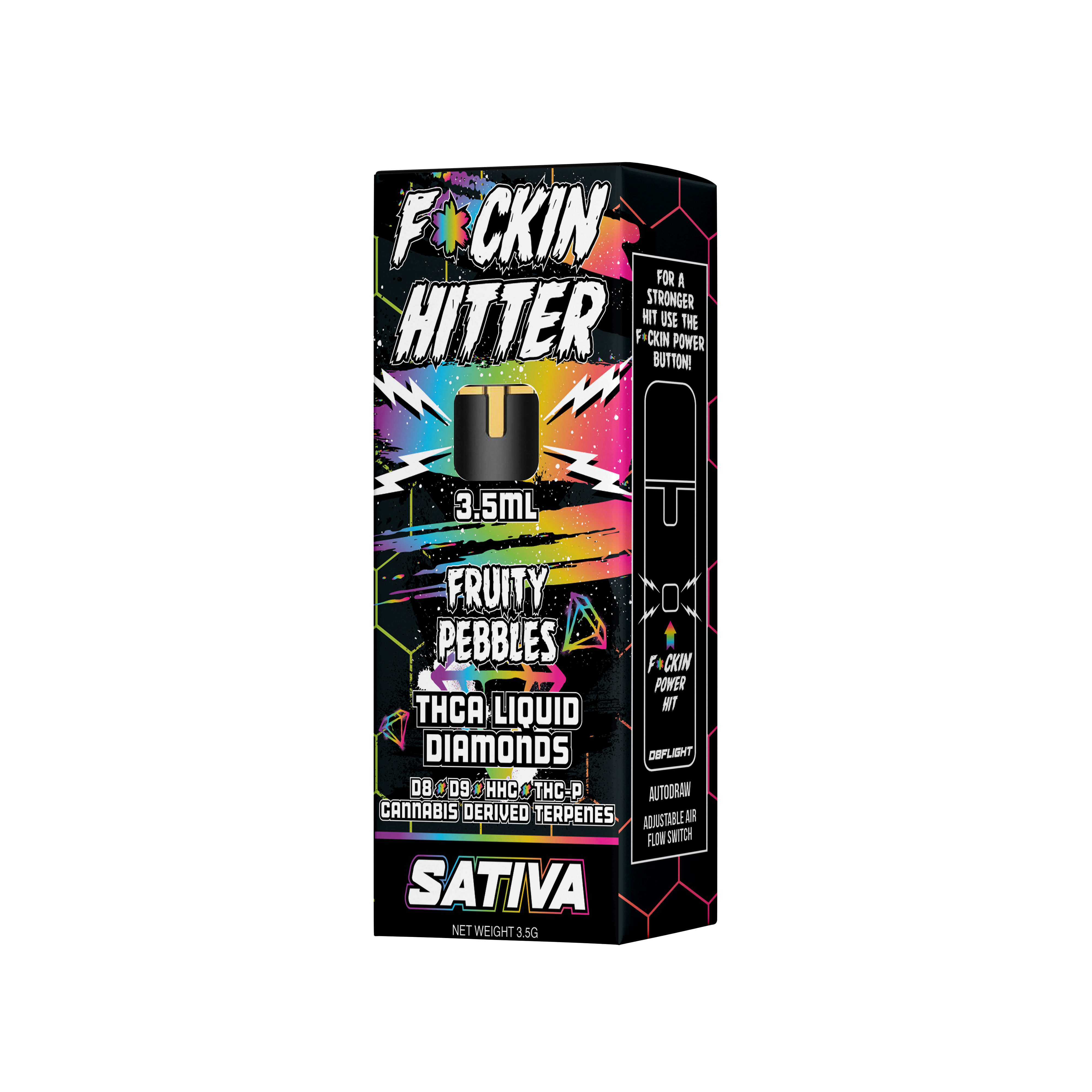 Enjoy the nostalgic Fruity Pebbles flavor with D8Flight F*ckin Hitter 3.5ml Disposable (5ct). A smooth, flavorful vaping experience in every puff.